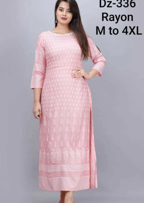 Adrika Pretty Kurti Fabric: Rayon Sleeve Length: Three-Quarter Sleeves Pattern: Printed Combo of: Single Sizes: M (Bust Size: 38 in Size Length: 52 in) L (Bust Size: 40 in Size Length: 52 in) XL (Bust Size: 42 in Size Length: 52 in) XXL (Bust Size: 44 in Size Length: 52 in) 3XL (Bust Size: 46 in Size Length: 52 in) 4XL (Bust Size: 48 in Size Length: 52 in) Country of Origin: India