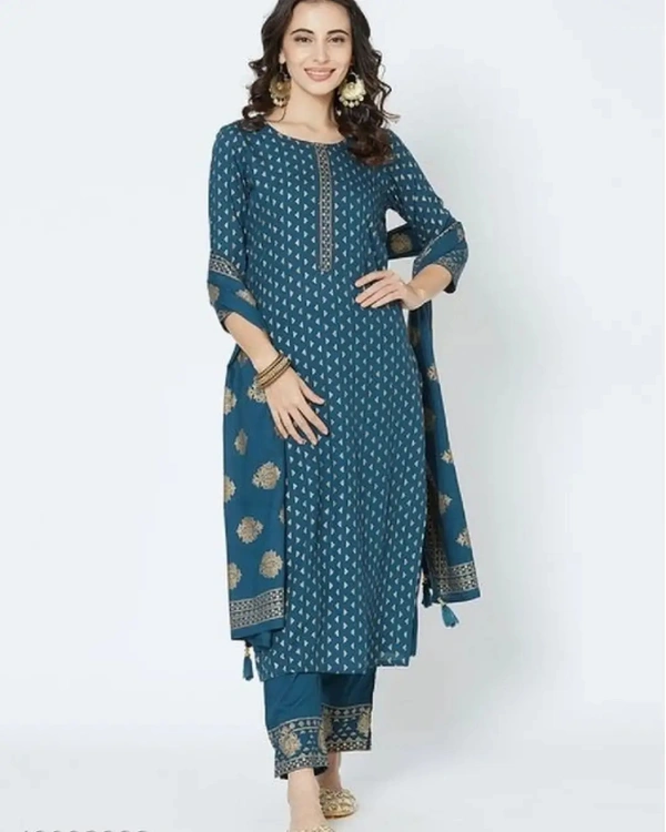 L (Bust Size: 32 in, Kurta Hip Size: 32 in, Kurta Length Size: 42 in, Bottom Waist Size: 32 in, Bottom Hip Size: 32 in, Bottom Length Size: 38 in, Duppatta Length Size: 2.5 m)